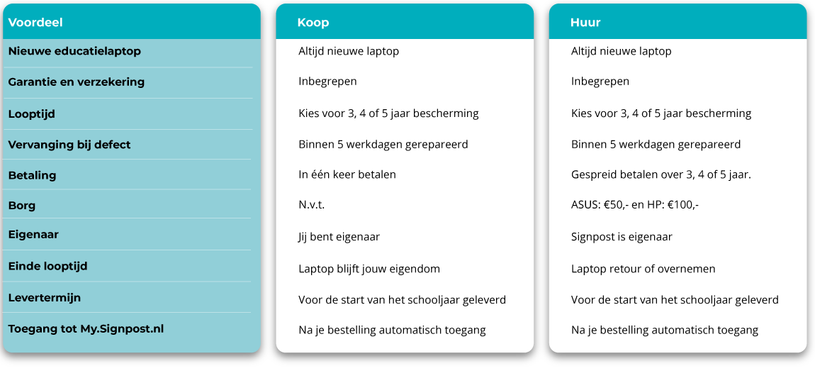 Of je nu kiest voor kopen of huren, je krijgt altijd hetzelfde complete pakket.